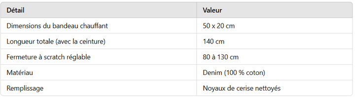 - À chaud : chauffez la ceinture au micro-ondes ou au four pour détendre les muscles et soulager les tensions.