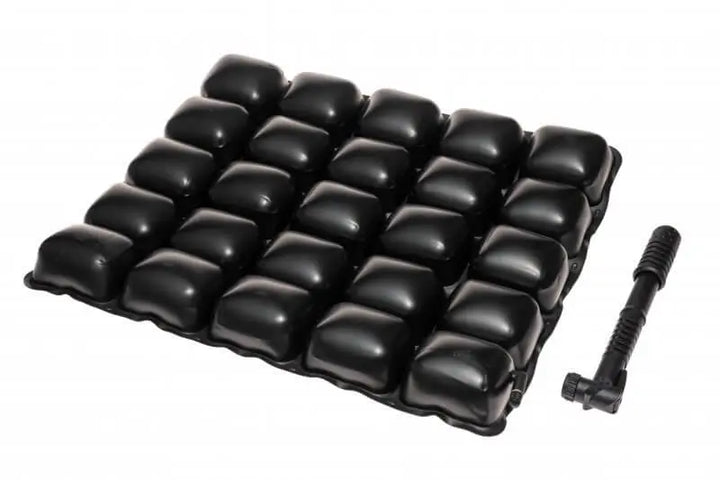 Coussin anti-escarres à air 42×42×6 cm offrant une répartition uniforme de la pression pour réduire les points de compression et améliorer le confort en position assise prolongée. Gonflage personnalisable pour l’ergonomie et la prévention, nettoyage facile pour un usage quotidien à domicile ou en milieu médical.